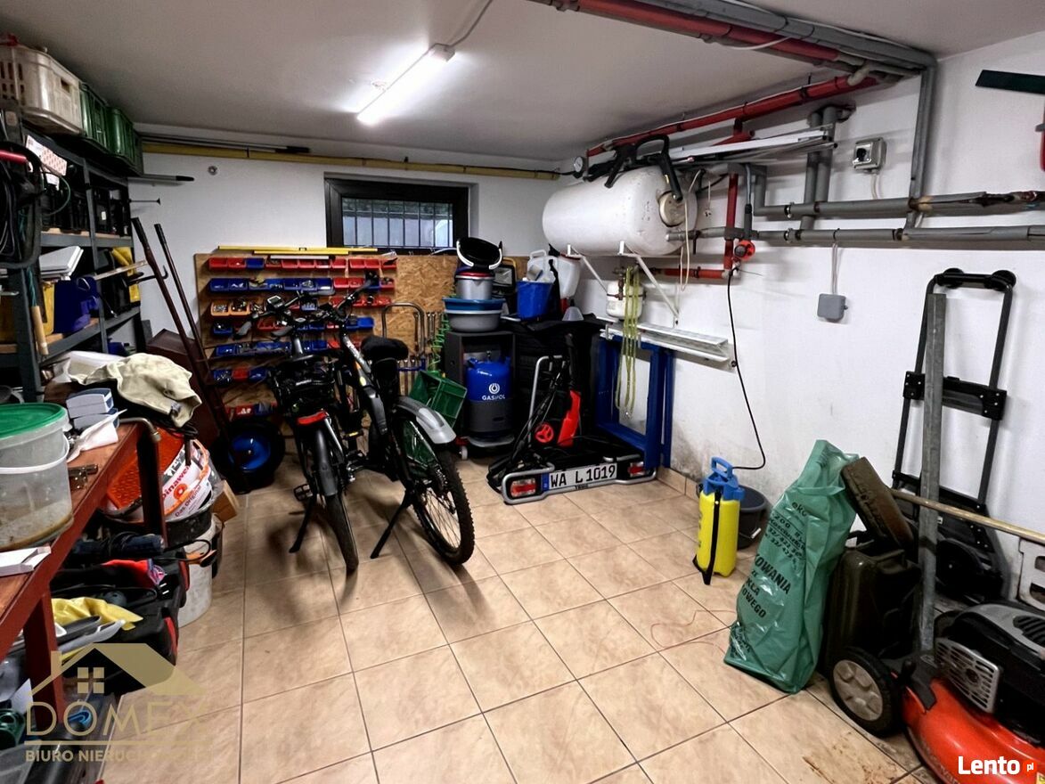 Oprócz powierzchni mieszkalnej do lokalu przynależy piwnica ogrzewana, w której znajduję się garaż z bramą automatyczną, pomieszczenie z dodatkową kuchnia i pralnią , pomieszczenie gospodarcze oraz pomieszczenie wspólne dla dwóch lokali w którym znajduję się siłowania, centralne ogrzewanie dla sprzedawanego lokalu.